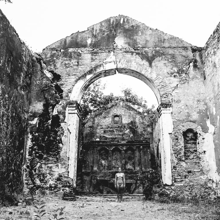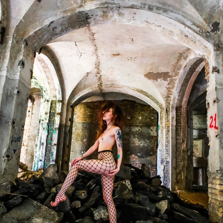 Set against the backdrop of abandoned or rugged locations, the contrast between the softness of the human body and the harshness of decaying environments creates a powerful visual tension. This juxtaposition serves as a metaphor for resilience and the reclaiming of spaces often forgotten or dismissed.